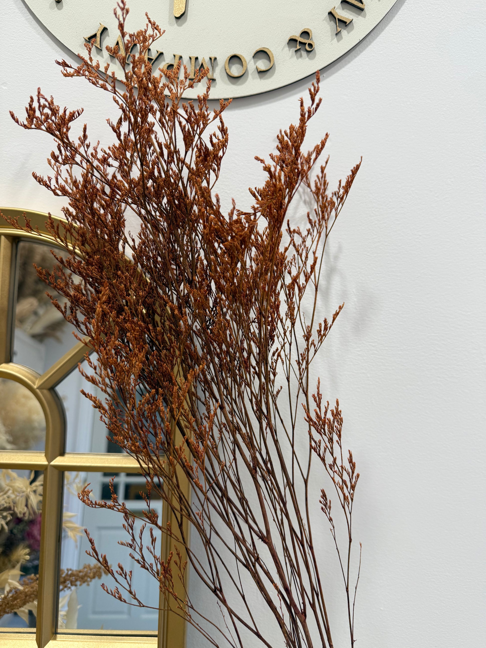 Bring a burst of autumn charm to your space with this vibrant orange limonium stem. Perfect for adding a playful pop of colour, its delicate blooms capture the season’s warm and cozy vibes. Ideal for brightening up any bouquet or crafting a whimsical autumn display that feels as lively as falling leaves.